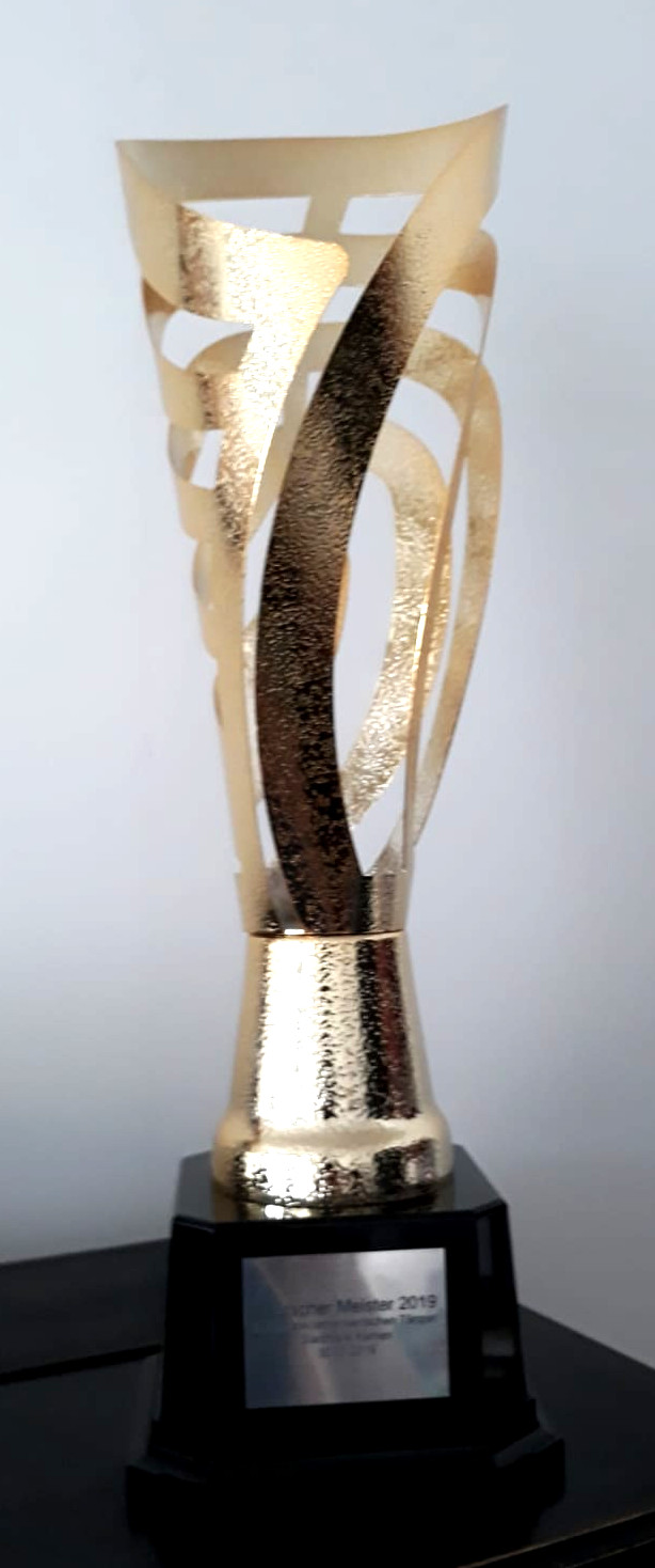 Gestern eingetroffen: der Siegerpokal der DM Latein 2019! Vielen Dank an die Sparkasse UnnaKamen, die diesen Pokal sponsort und die Veranstaltung darüberhinaus finanziell unterstützt. Hier geht's zu unseren Partnern und Sponsoren. |