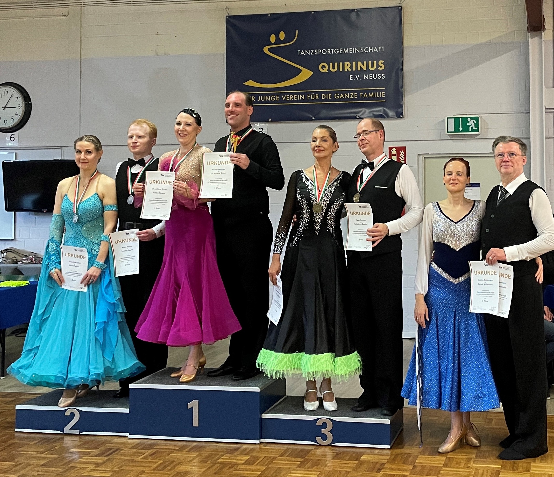 Mit einem echten Traum-Ergebnis: Landesmeister der MAS I C Std - WOW!! - steigen Martin/Juliane in die B-Klasse auf. Im kleinen, aber feinen 4-paarigen Feld tanzten sie sich sehr überzeugend auf den 1. Platz und nahmen überglücklich ihre Goldmedaillen in Empfang! - Viel Spaß und Erfolg in der neuen Klasse!