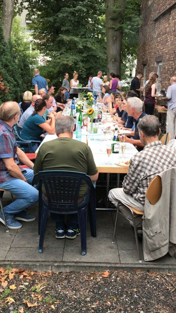 Zu einem Grillfest am frühen Dienstagabend traf man sich in den Ferien in gemütlicher Runde. Besonders schön, dass auch etliche "ehemalige" Mitglieder den Weg ins Tanzsportzentrum - und dort auf die Terrasse - gefunden hatten.
