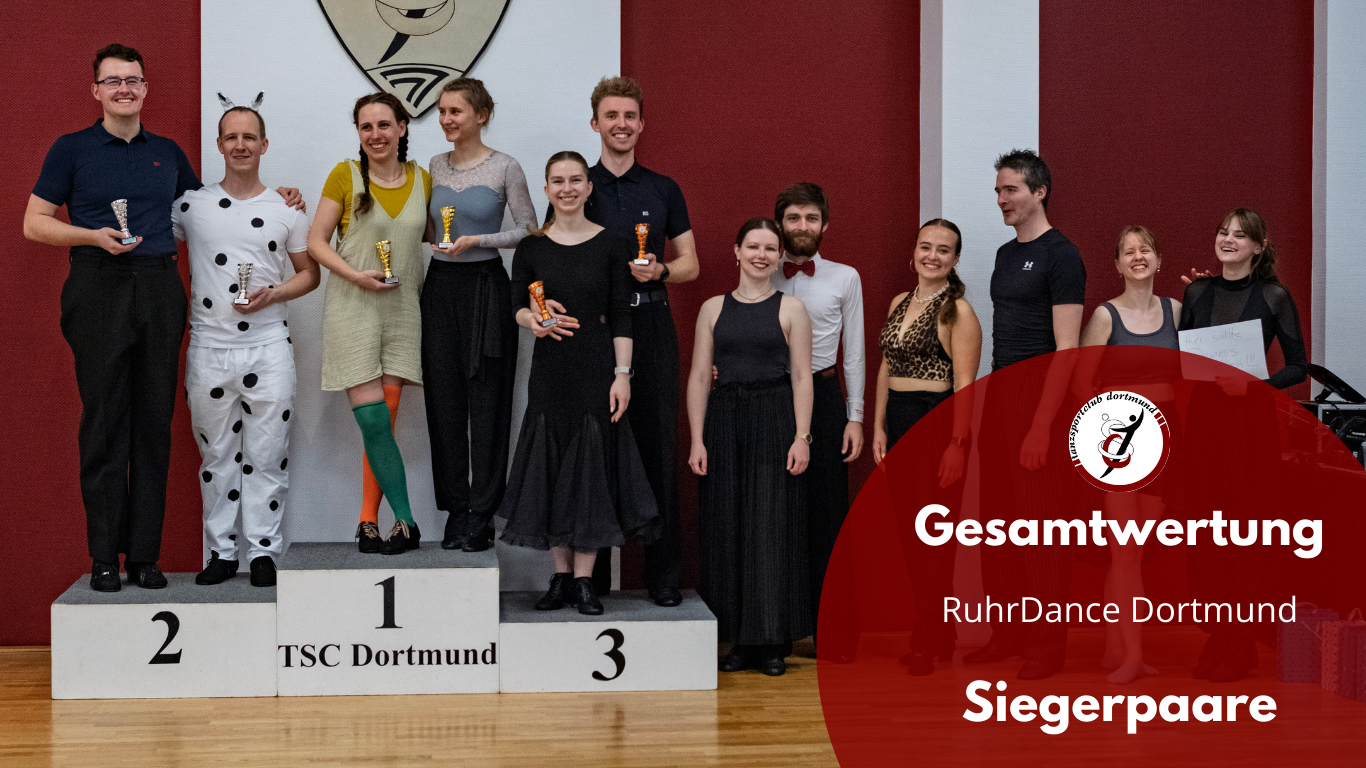 Letzte Woche Samstag fand unser zweiter RuhrDance statt! Es war wieder ein toller Tag mit vielen netten Menschen, spannenden Turnieren und einem geselligen Tanzabend. - Wie letztes Jahr haben wir wieder drei Turniere angeboten: Latein-Breitensport, Standard-Breitensport und Jack’n’Jill...