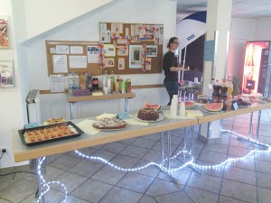 Für besondere Naschkatzen hatten sich die Helfer Kuchen mit Gummibärendekoration einfallen lassen, und die Cocktails mit buntem Zuckerrand und herrlichen Farbspielen fanden reißenden Absatz bei den feiernden Kid´s. Alle ließen es sich gut gehen, auch die Eltern gönnten sich Kaffee und Kuchen.