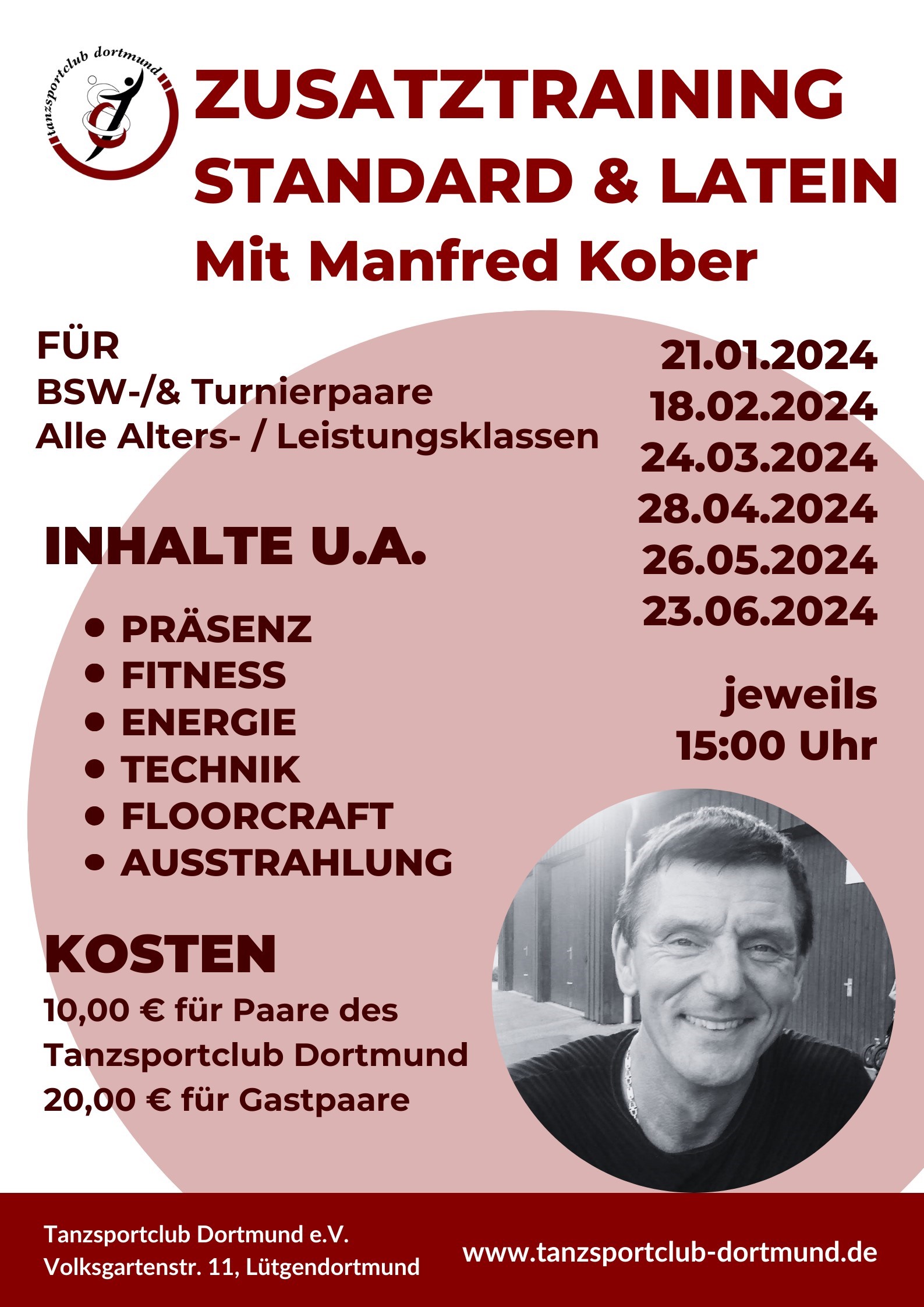 Auch in diesem Jahr wird das ZUSATZTRAINING STANDARD/LATEIN mit Manfred Kober fortgesetzt,