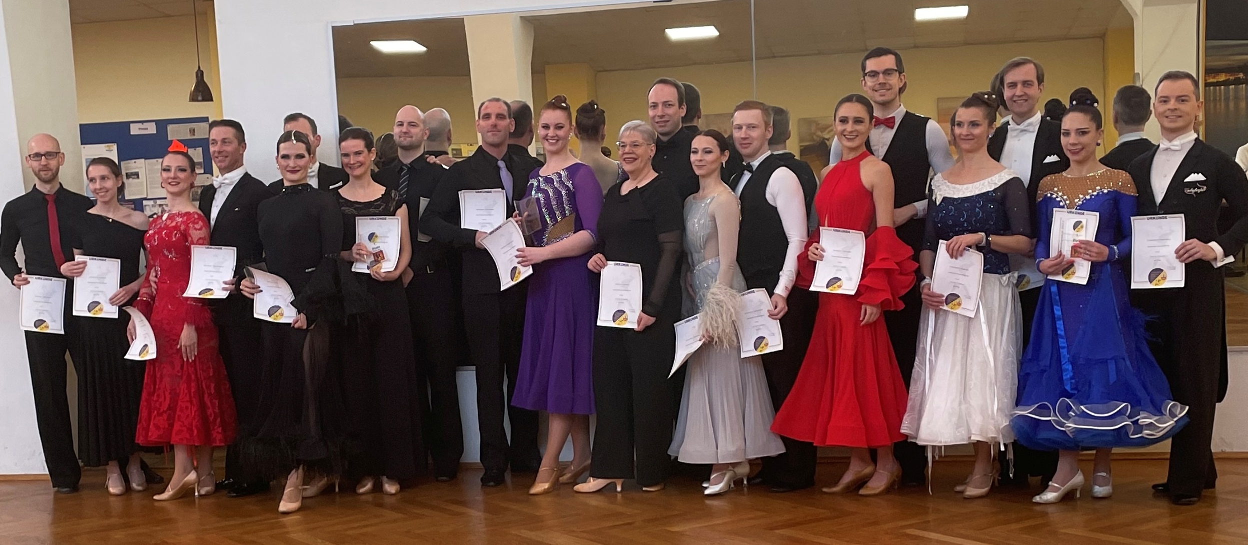Und sie nutzten die Gelegenheit, als Sieger die B mitzutanzen, und waren auch da sehr erfolgreich: Auf den ersten Blick Platz 3 (von 3), aber Langs. Walzer und Tango auf Platz 2 - wow! ![]()