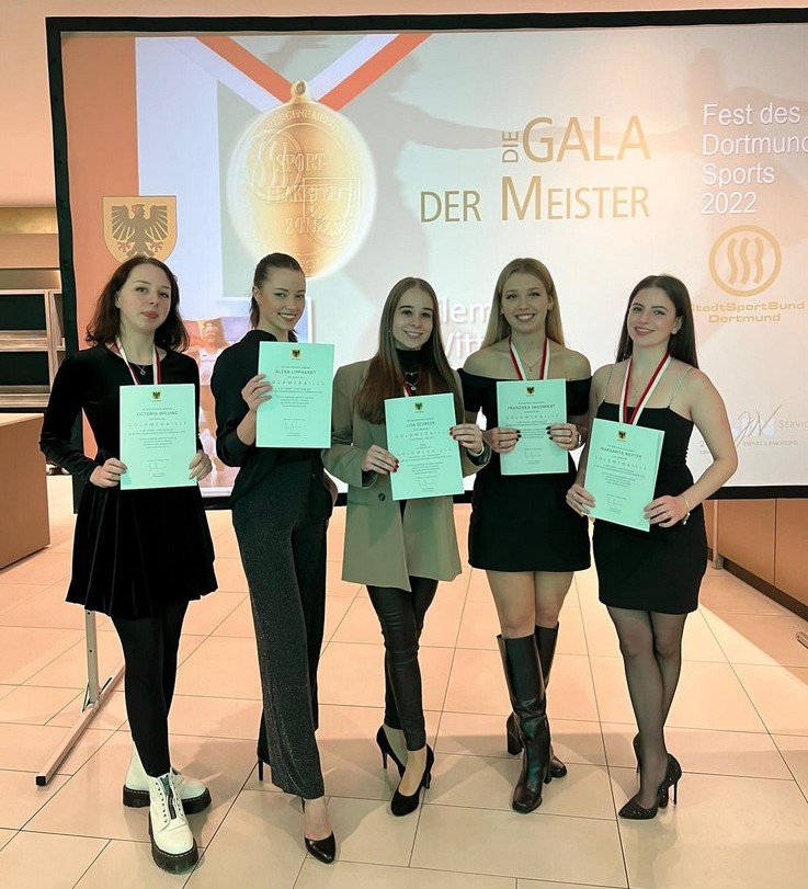 Gestern wurden einige unserer Tänzerinnen der Adults Jazz-Leistungsgruppe (Kim Göbbels, Alexa Lipphardt, Viktoria Nawrat, Margarita Royter, Franziska Sausmikat, Victoria Willing) sowie unsere Trainerin im Bereich Jazz, Modern/Contemporary, Showdance und Ballett, Lisa Schreer, auf dem 'Fest des Dortmunder Sports' geehrt.