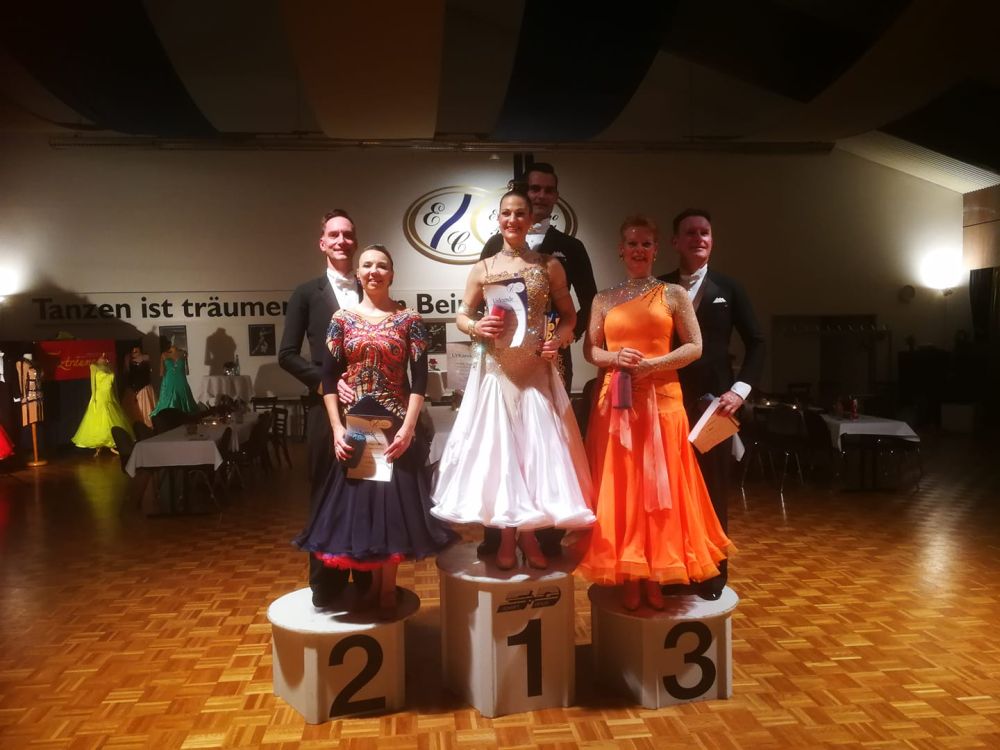 Der TSC Ems-Casino Blau-Gold hatte zum jährlichen Nikolaus-Pokal Turnier eingeladen - und Jochen Nölle und Tatjana Flohr-Nölle waren der Einladung gefolgt. Da "nur" drei Paare am Start waren, hieß es, sich optimal zu präsentieren und zu überzeugen. In den ersten beiden Tänzen rangierten Jochen und Tatjana auf dem 2. Platz, der Wiener Walzer und Slowfoxtrott ging an unser Paar - der Quickstep musste die Entscheidung bringen. Mit einem 2. Platz im Quickstep und damit auch dem 2. Platz im Gesamtergebnis beendeten Jochen und Tatjana das Turnier.