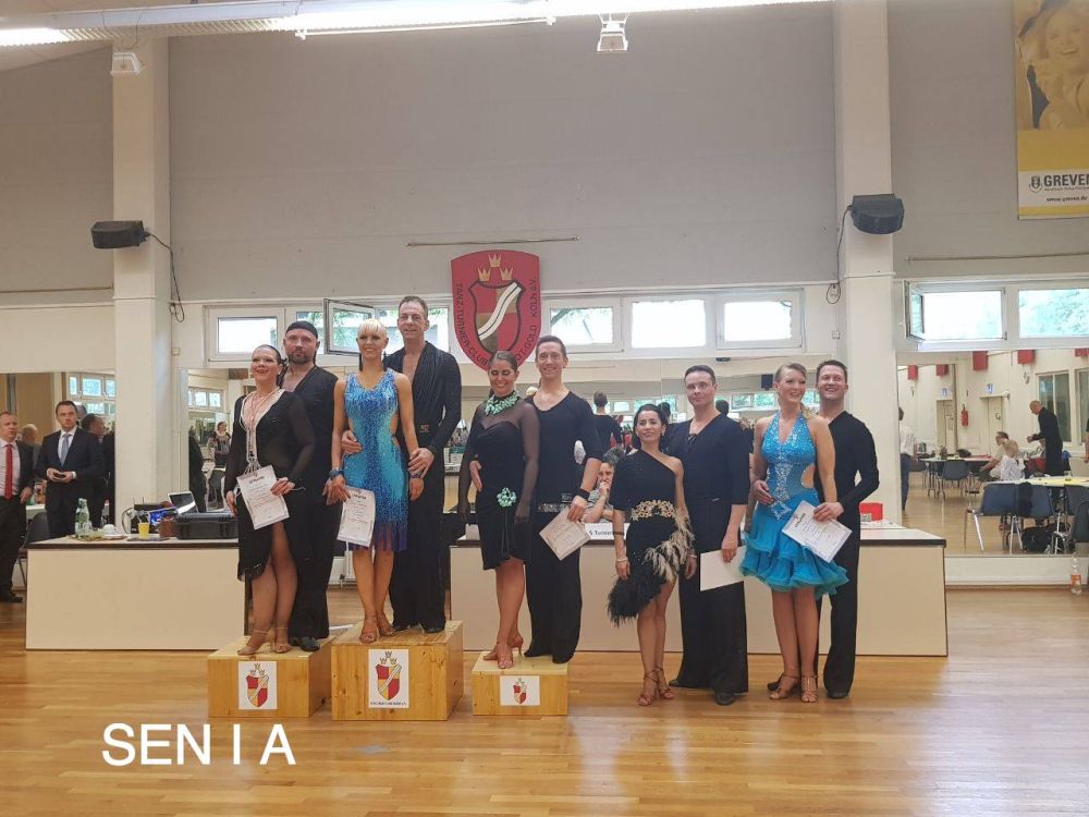 Welch toller Erfolg für Grischa und Katarina - unsere Kinder- und Jugendtrainer am Freitag: 10 Tänze Meisterschaft beim TD Düsseldorf Rot-Weiß - und die Beiden sind die Überraschung des Abends. Erst im Februar haben sie mit dem Lateintraining begonnen - und jetzt direkt auf das Treppchen getanzt. 21 Paare waren an diesem Abend am Start, das bedeutete, dass 6 Runden getanzt werden mussten - nach 5 Jahren 10-Tänze-Pause keine ganz leichte Aufgabe, aber Grischa und Katarina meisterten diese mit Bravour. Im Standardbereich waren sie überlegene Erste, im Lateinturnier wurden sie auf den 5. Platz gewertet. Das ergab im Ergebnis den 3. Platz, die Bronzemedaille, das drittoberste Treppchen.