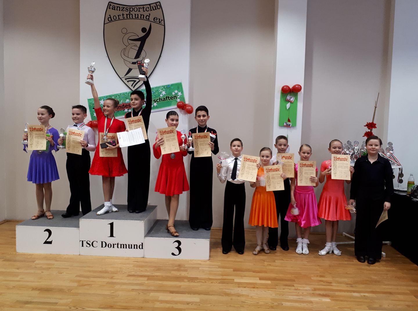 In diesem Jahr war der TSC Ausrichter der Landesmeisterschaften Kinder D und C Latein, sowie Junioren I und II D-B. Von 10 Uhr am Morgen bis nach 18 Uhr folgte eine Meisterschaft der nächsten – auch einige unserer Paare gingen erfolgreich an den Start. Allen voran Maxim Friesen und Alina Kusurmann. In der Kinder D Latein tanzten sich die Beiden mit dem 4. Platz von 7 Paaren erst so richtig warm. Richtig Gas gaben sie im späteren Turnier der Junioren I D Latein - dort holten sie sich von 13 Paaren den Vizelandesmeistertitel und zeigten über 3 Runden richtig gute Leistungen.