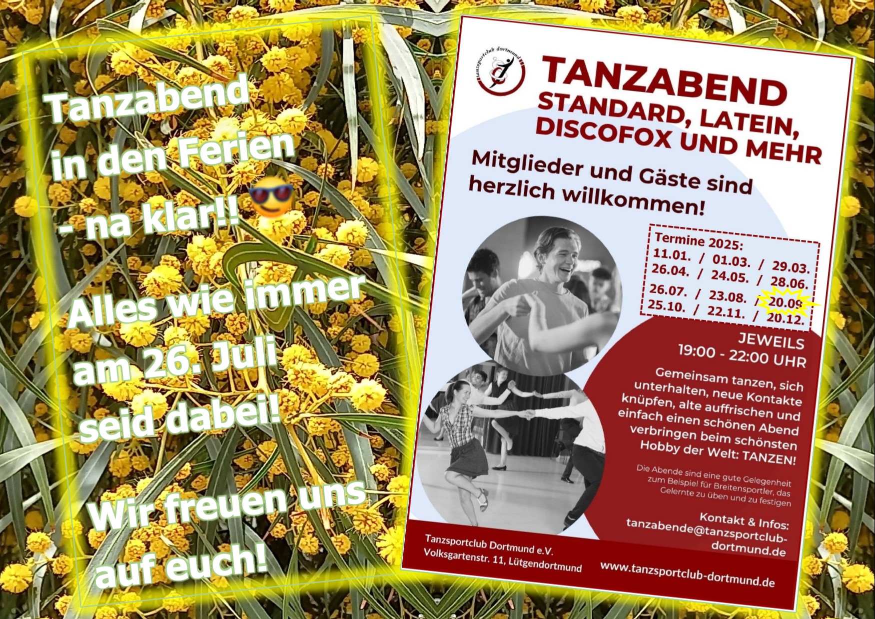Ja, ja, ihr wisst es natürlich: Unseren tollen Tanzabend gibt's auch in den Ferien, und wir freuen uns sehr auf kommenden Samstag!!