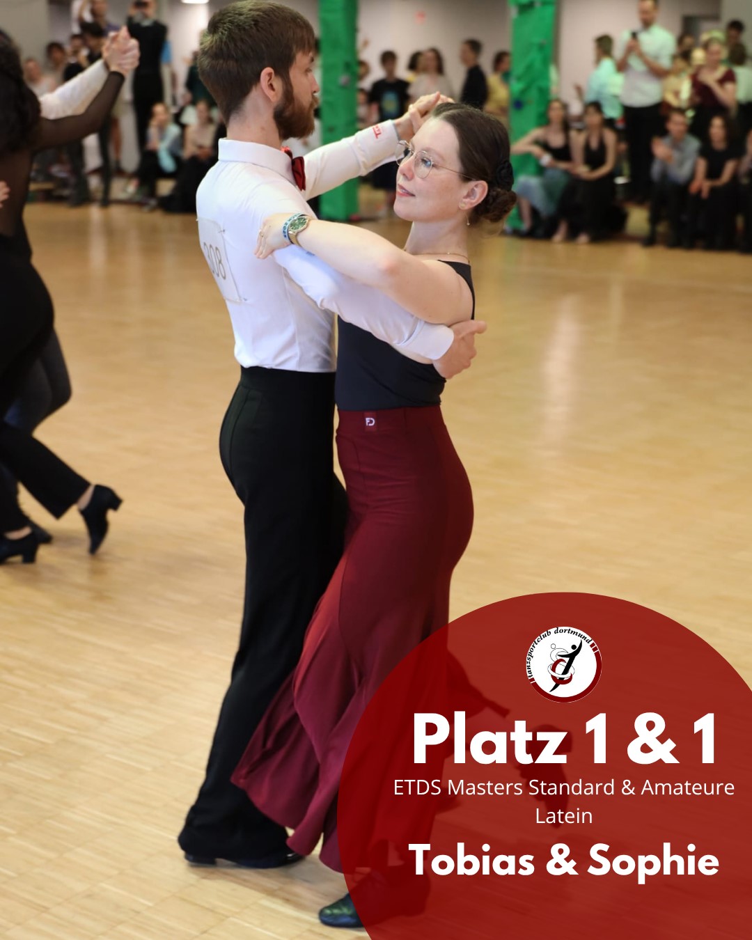 Das Team Dortmund konnte an beiden Tagen zahlreiche gute Platzierungen einheimsen: erste Plätze gewannen dabei Kai (Champions Latein) und Sophie & Tobi (Masters Standard)!