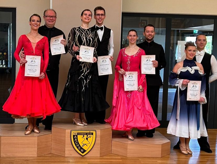 und es nur einmal nicht nutzt: CHRIS und FRANZI ertanzen sich in vier Turnieren beim Traditionsturnier 'Tanzen im Dreiländereck' in Aachen kleinen Feldern tatsächlich drei erste Plätze und einen zweiten Platz - WOW!! - Am Samstag und Sonntag, jeweils HGR und HGR II C, tanzen sie alle vier Turniere mit viel Spaß und Bravour!! - Klasse!